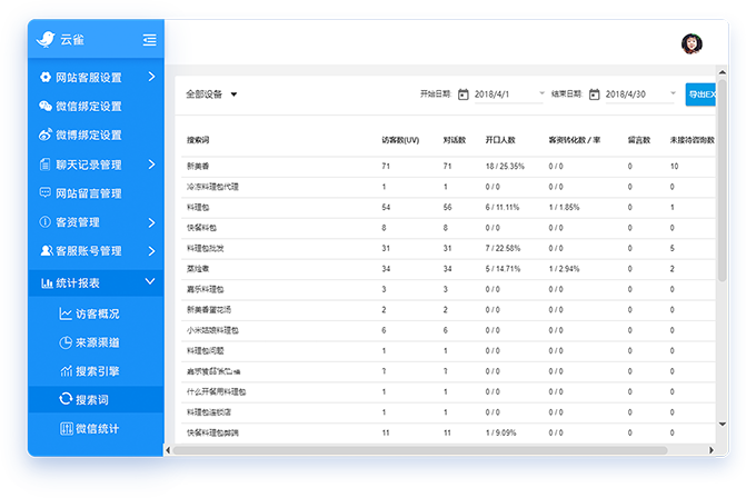 记录访客进入网站时搜索的关键词,统计各项数据。