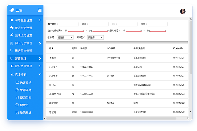 查看已备注客户资料, 了解客服每天获客效果,随时筛选查找