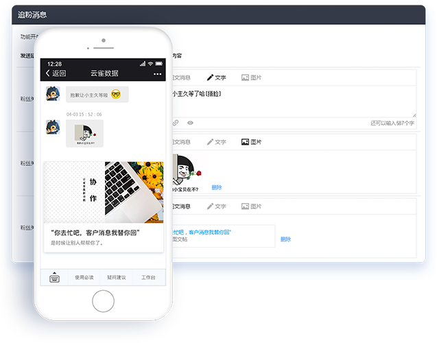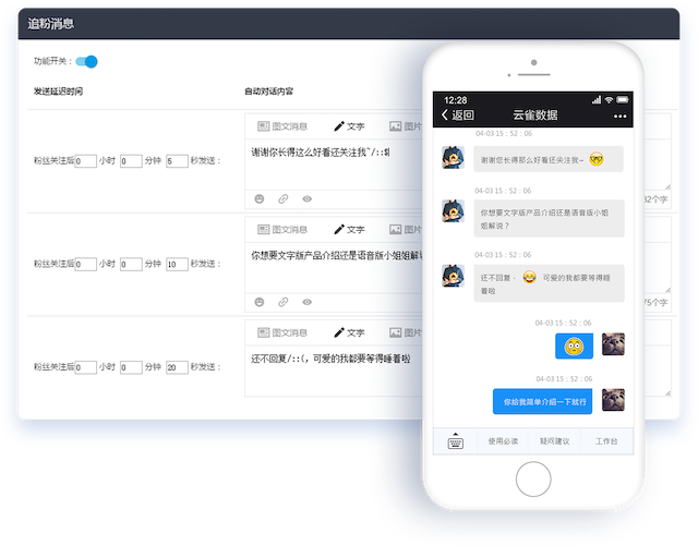 告别用户冗长的等待时间,区别于微信后台的繁琐操作,提升粉丝互动性。