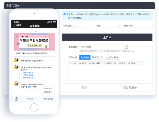 点菜单追粉、无人工介入也可高效获客