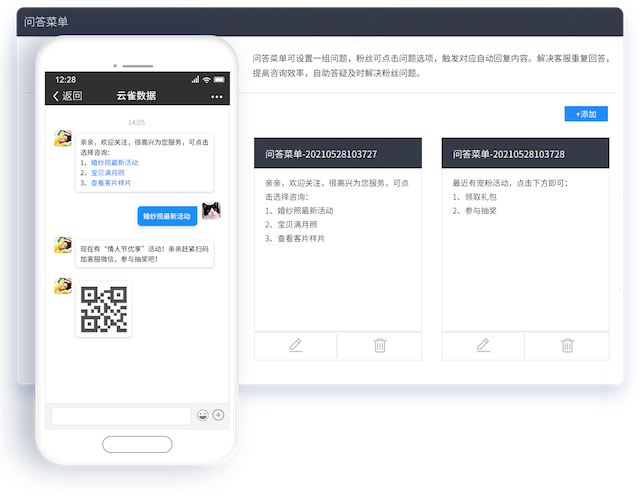 问答菜单+关注回复,粉丝咨询一步到位