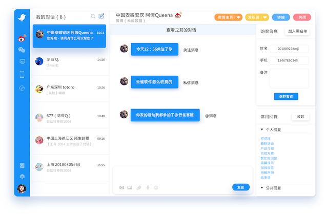 粉丝私信、转发、@我消息全部接入。